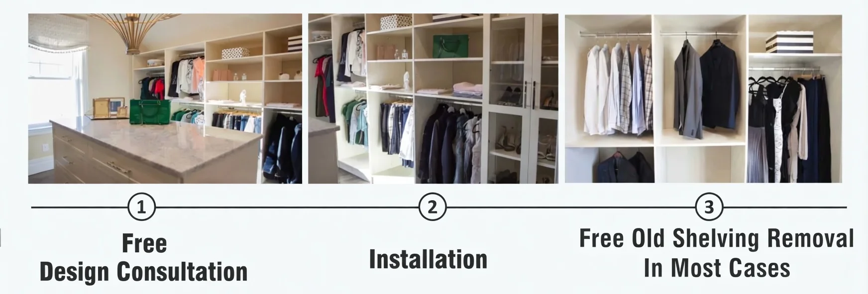 Our team of experts understand the importance of an organized closet to help eliminate stress and enhance the enjoyment of your living space. We offer a free consultation where you will work closely with one of our designers to create a design that surpasses all of your expectations. Our designers will be with you every step of the way.