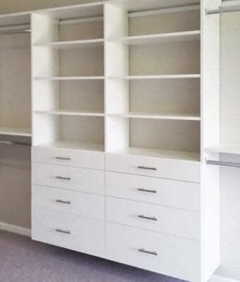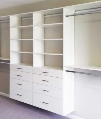 The closet of your dream can easily become a reality with Closets Creation. We offer multiple choices of unique walk-in closet designs. The efficient organization of your bedroom will help save time during the morning because you won’t have to search for your favorite dress or shirt in piles of clothes stuck in one drawer. We will help you to choose the right size, color, and materials of closet storage shelves to go inside your unit. You need to make a choice, whether it is that you have a spacious bedroom or a smaller one. Our professional designers will always meet your needs and all closet designs can be custom-fit to any space.